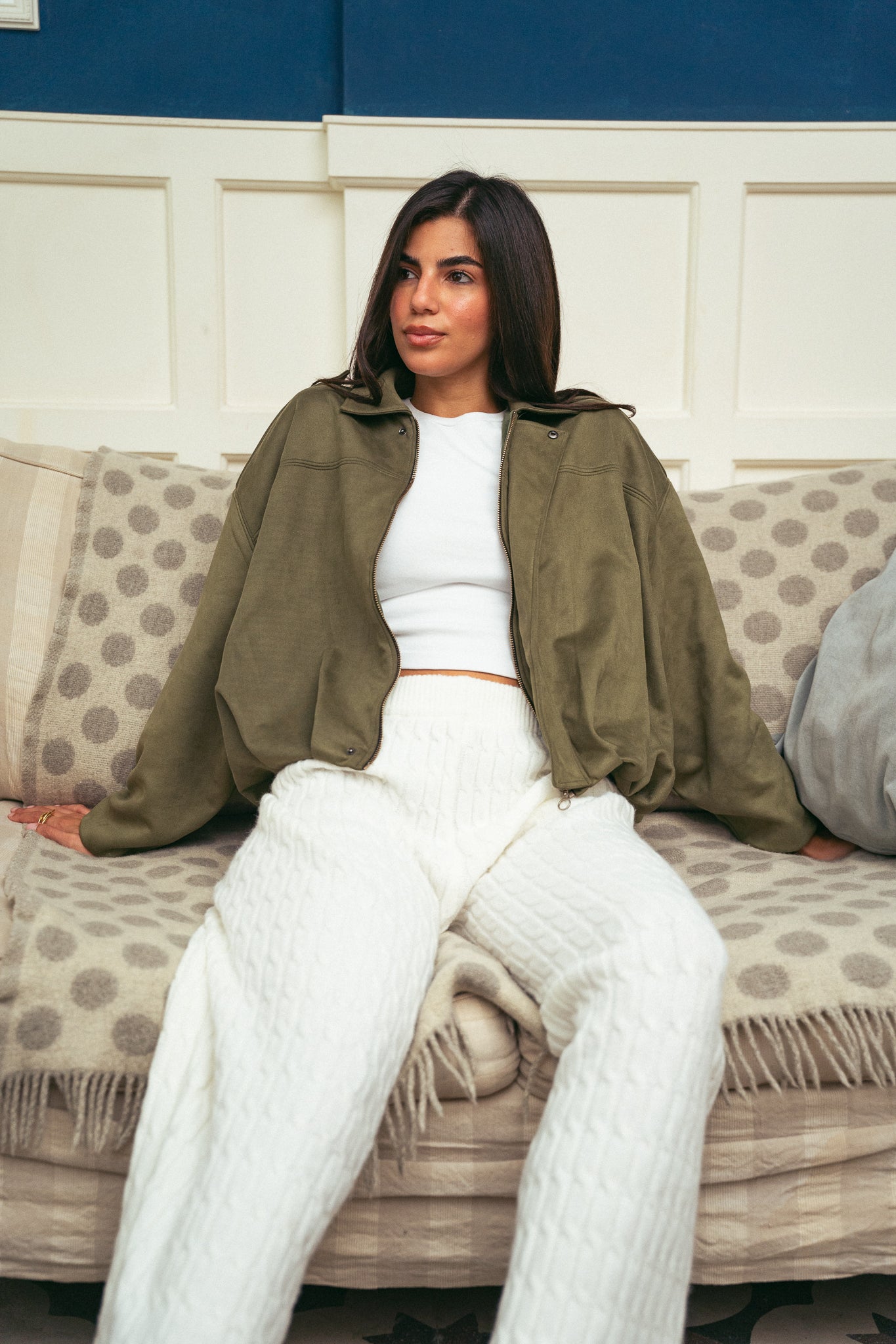 Pre Orders Suede Bomber Jacket – In Olive